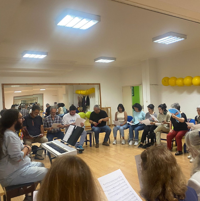 Duas vezes por semana, das 19.00 às 21.00, estamos juntas/os no Centro Cultural de Algés para ensaiar. Momentos em que, para além de aperfeiçoarmos tecnicamente o nosso desempenho, tecemos união.